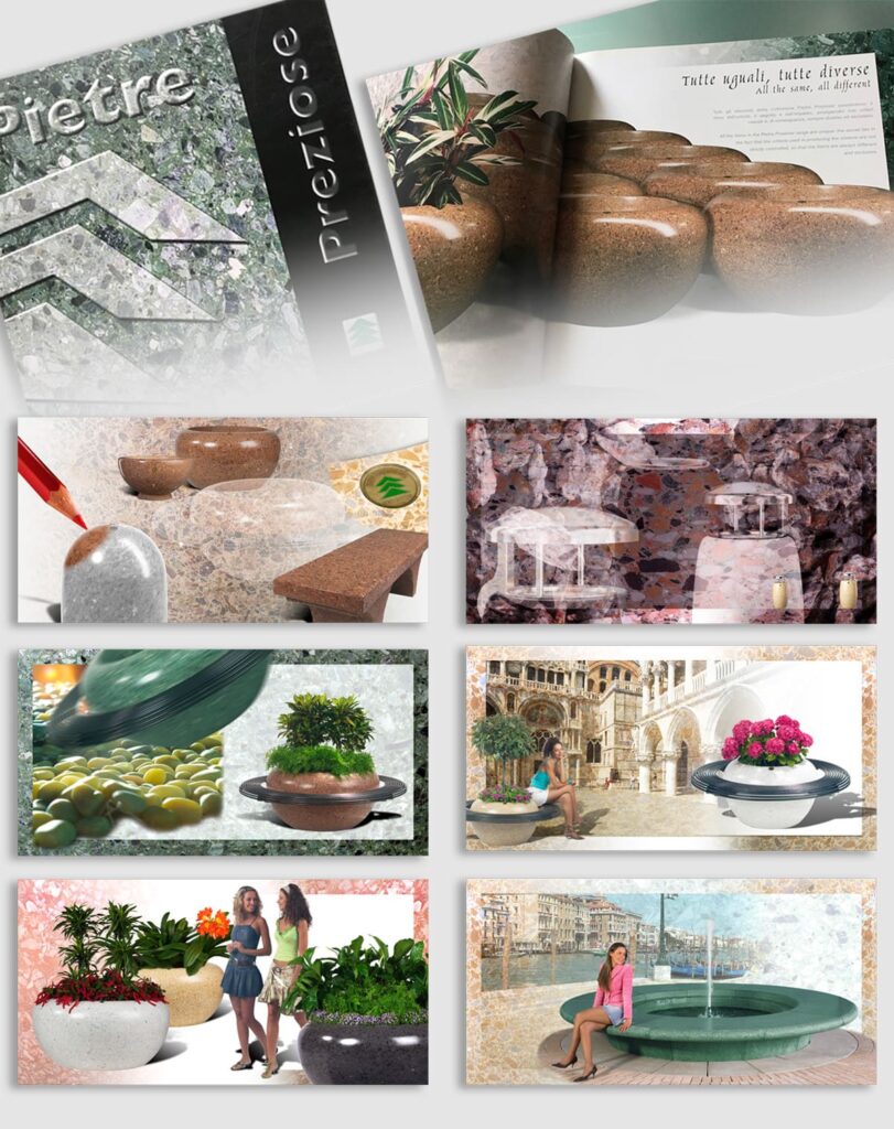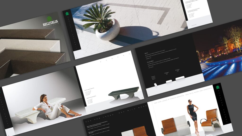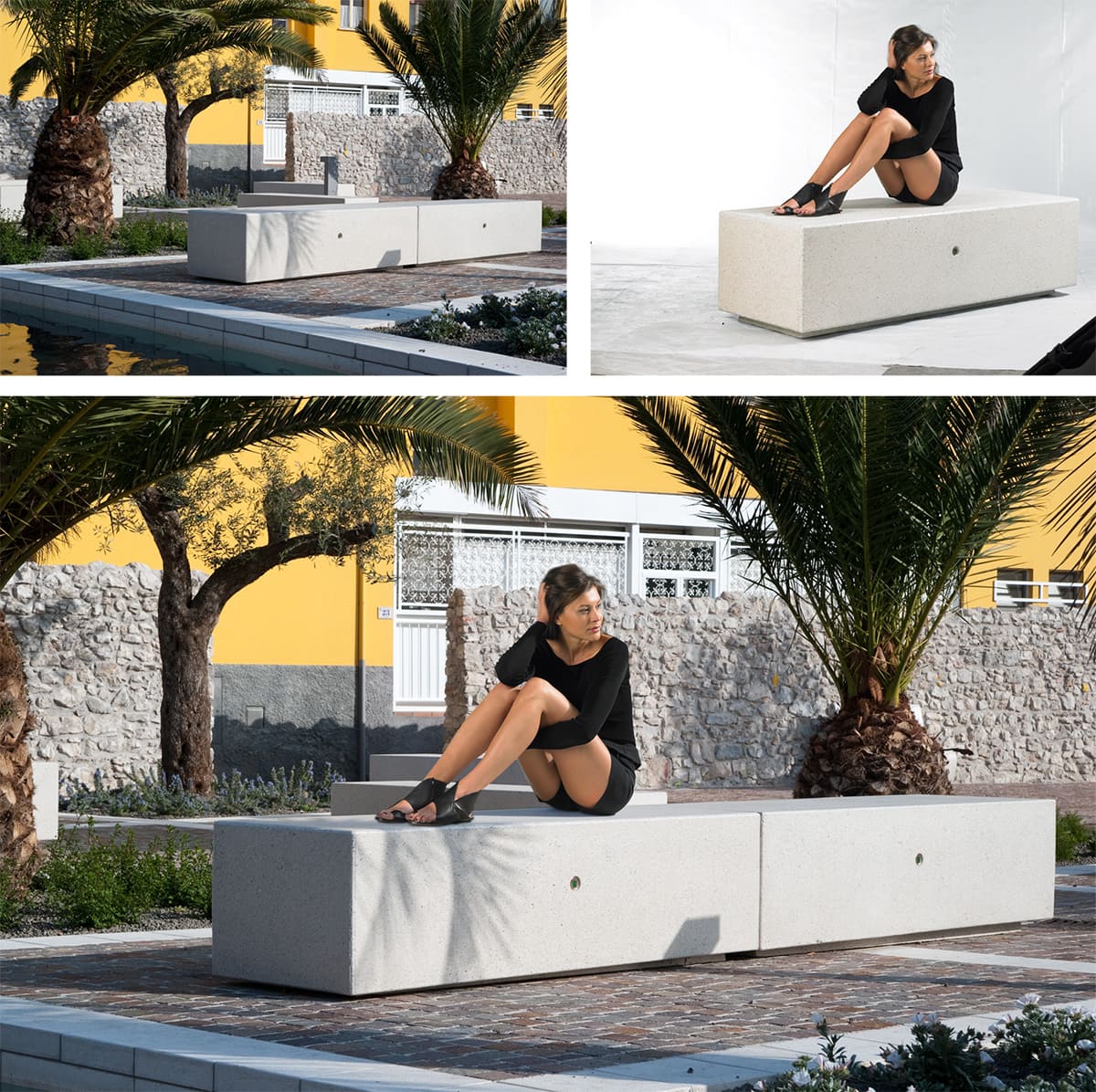 Come è naturale che sia, i prodotti di arredo urbano seguono le tendenze del design. È venuto il tempo del bianco e nero, dell’essenzialità e della purezza delle linee. Le pietre preziose sono ancora protagoniste della città, cambiano i colori richiesti e le forme, ma il materiale è talmente duttile che non è un problema, anzi. Così il nostro catalogo diventa un sottile gioco di equilibri tra bianco e nero, tra grigio chiaro e grigio scuro, con solo qualche sobria pennellata di colore. E la fotografia prende il ruolo di protagonista. Jorge Moro ha realizzato gli scatti di questa edizione con sapienza e maestria. Insieme abbiamo curato ogni dettaglio fino al dress-code e i complementi delle modelle, come in un servizio di moda. Il risultato ricorda molto da vicino una pubblicazione di architettura.